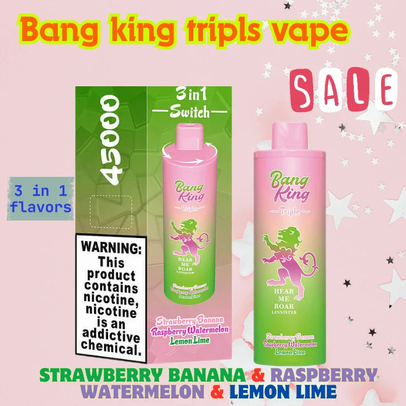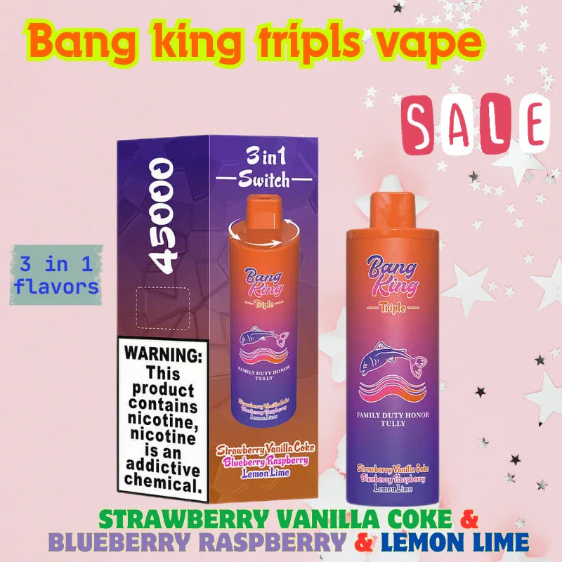 TRIPLE 45K of bangking vape contains 3x15ml pods, offering bold, separate flavor channels. 45k vape of bangking triple with 45,000 puffs, a compact 650mAh battery, Type-C recharging, and 2%/5% nicotine options, triple disposable 45k puffs vape is built for heavy usage without compromise.
