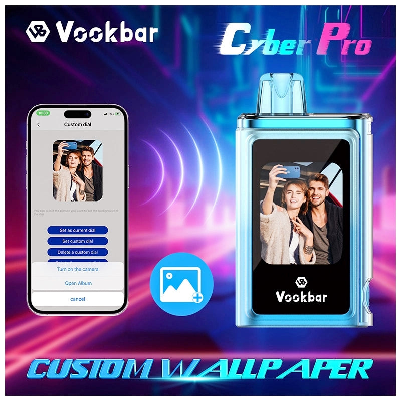 Integration with Bluetooth connectivity elevates the convenience of the Vookbar Cyber Pro 30000 Vape. By connecting your device to your smartphone. you can access various smart features. receive notifications. and even update firmware directly from your phone.