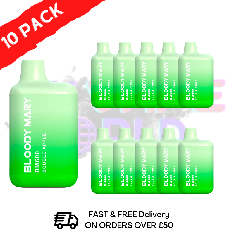 Double Apple - Bloody Mary 600Puff Disposable Pack Of 10Dual apple delight: a crisp fusion of sweet and tart, this vape flavor captures the essence of orchard-fresh apples in every inhale.