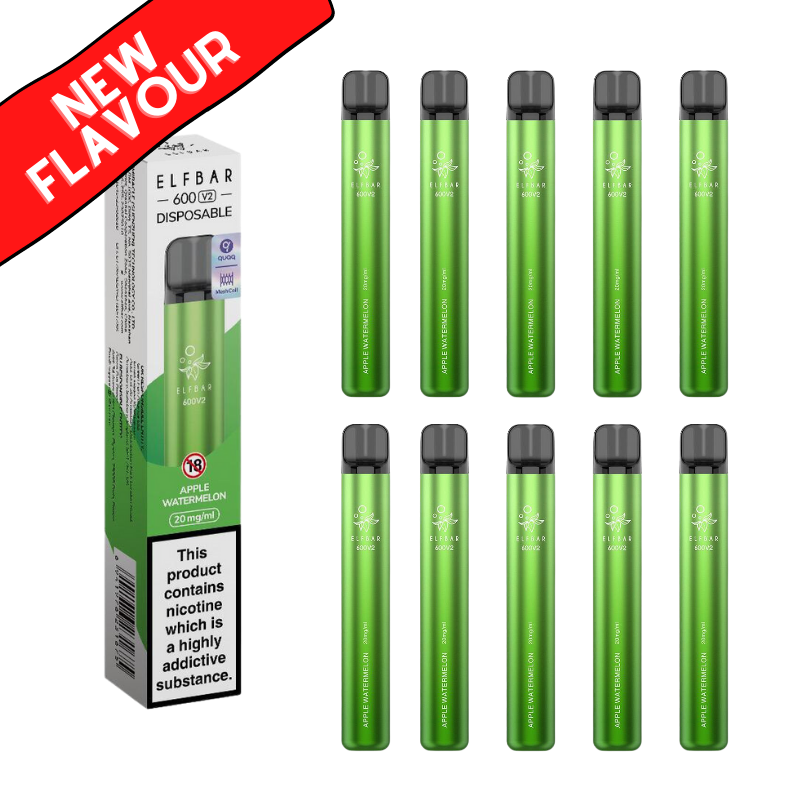 Elf Bar 600puff APPLE WATERMELON Flavour Box of 10 Disposable Vapes UK - Bulk Order