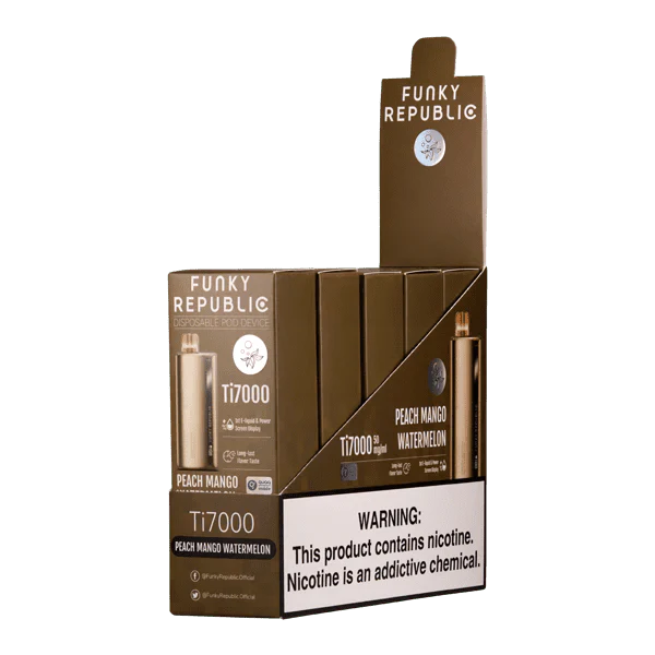 Effortless vaping meets sustainable design with the Peach Mango Watermelon Funky Lands Ti7000’s rechargeable disposable convenience. Why settle for less when you can enjoy an uninterrupted experience? Compact and pocket-friendly, this elegant device is perfect for vaping on the go. Its rechargeable feature ensures that not a single drop of flavor goes to waste, letting you enjoy every moment without compromise, whether you’re at a party, on a road trip, or relaxing at home.