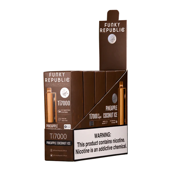 Escape to a tropical paradise with every puff of the Pineapple Coconut Ice Funky Lands Ti7000. This refreshing blend combines the juicy sweetness of ripe pineapples, the creamy richness of coconut, and a frosty dash of cool menthol. Each inhale transports you to sun-soaked beaches, delivering a smooth yet bold flavor that's both satisfying and invigorating. Perfect for those who love a vacation-inspired vaping experience.