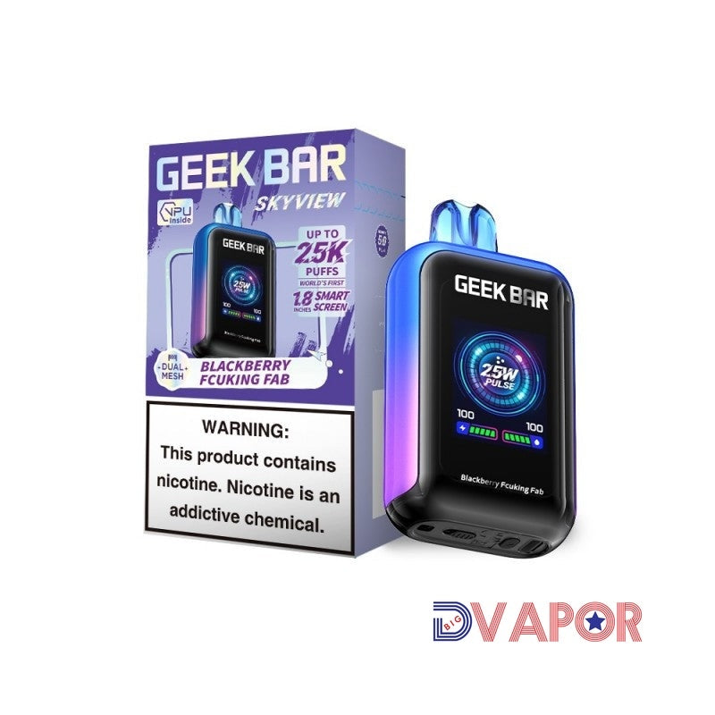 With 25,000 puffs, dual mesh coils and 16ml of liquid, the Geek Bar Skyview is a powerhouse of vaping technology. Experience the smooth clouds and enhanced flavor thanks to the dual mesh coils. The full color display not only shows your juice and battery levels, but also features a stunning animation (5 different User Interfaces). Plus, the USB Type C charging allows for rapid charging capabilities. Adjustable airflow lets you regulate the size of the vape as well as the number of ultimate puffs you can obtain from the device. This device can be used on: