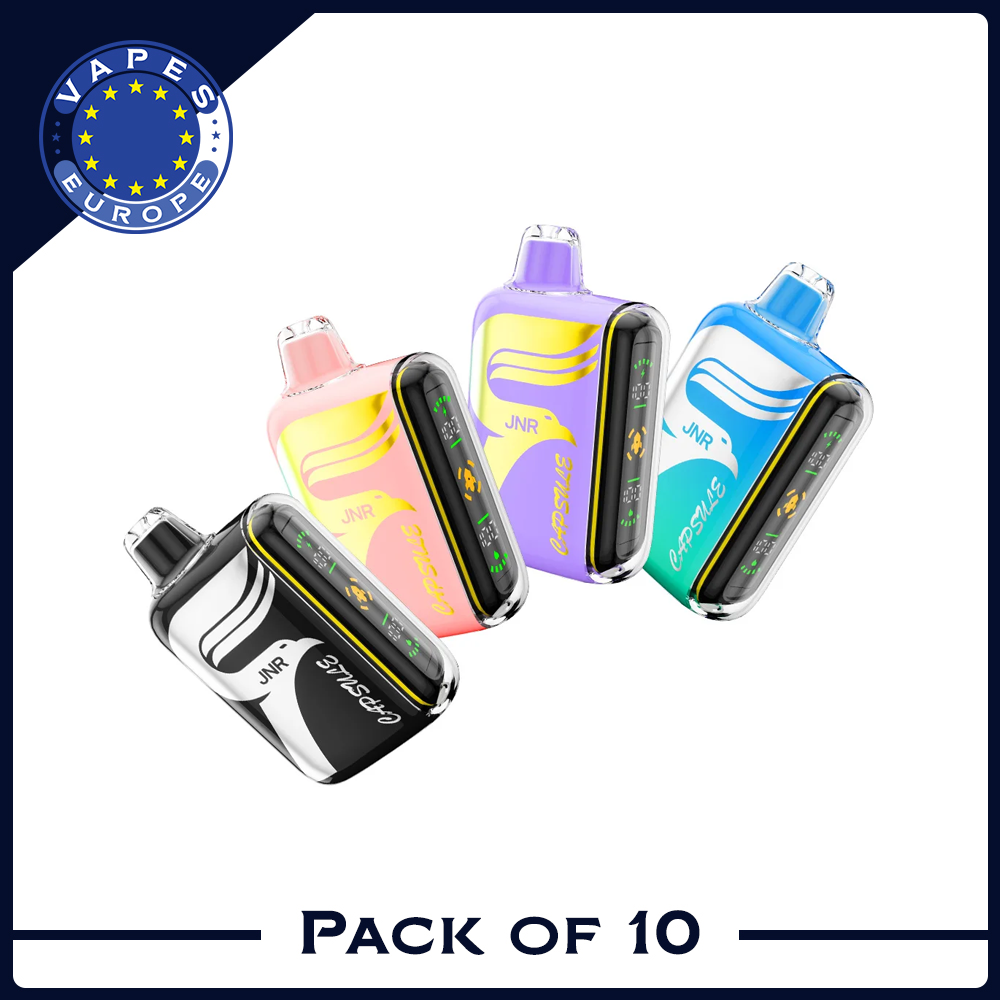 Jnr Capsule 15000 puffs is 850mAh battery and a generous 20ml e-liquid capacity, the Capsule offers a diverse range of over 20 flavors, from refreshing ice to delightful fruits. The Smart LED Display keeps you informed about your battery life and e-liquid levels, allowing you to vape with confidence.