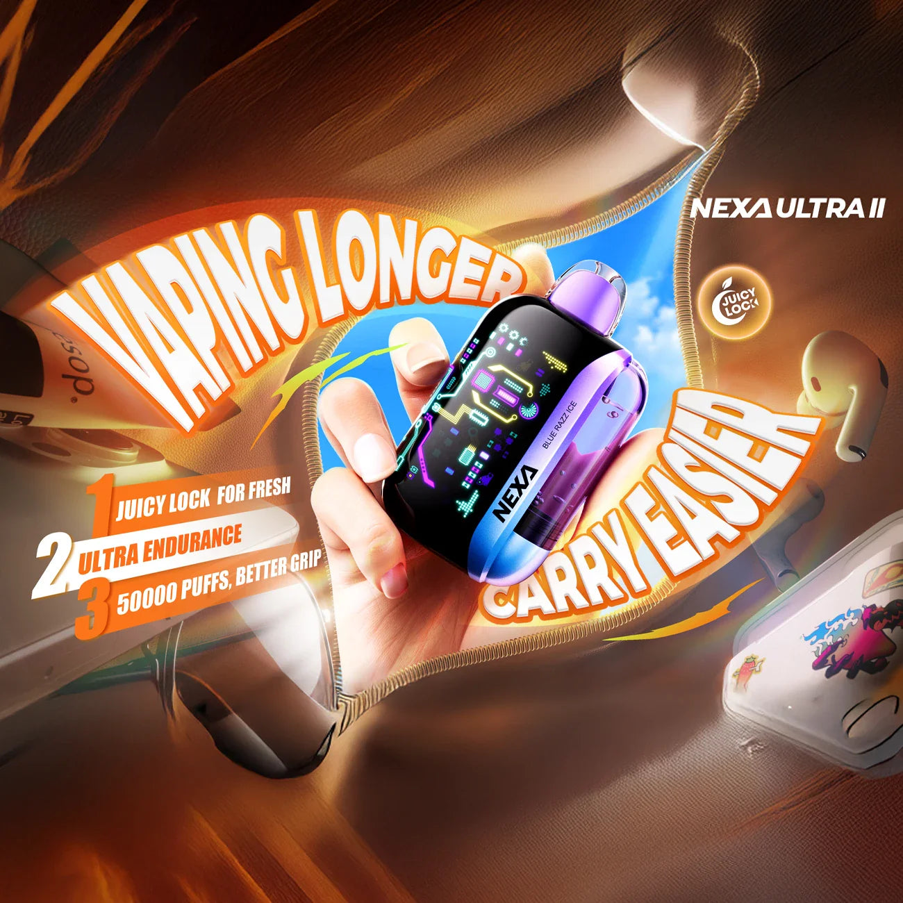 Choose the Nexa Ultra II 50k Puffs Disposable Vape and vape with confidence — powered by innovation, backed by precision engineering, and optimized to outperform generic disposables. Experience extended sessions without constant replacements — your next level awaits.