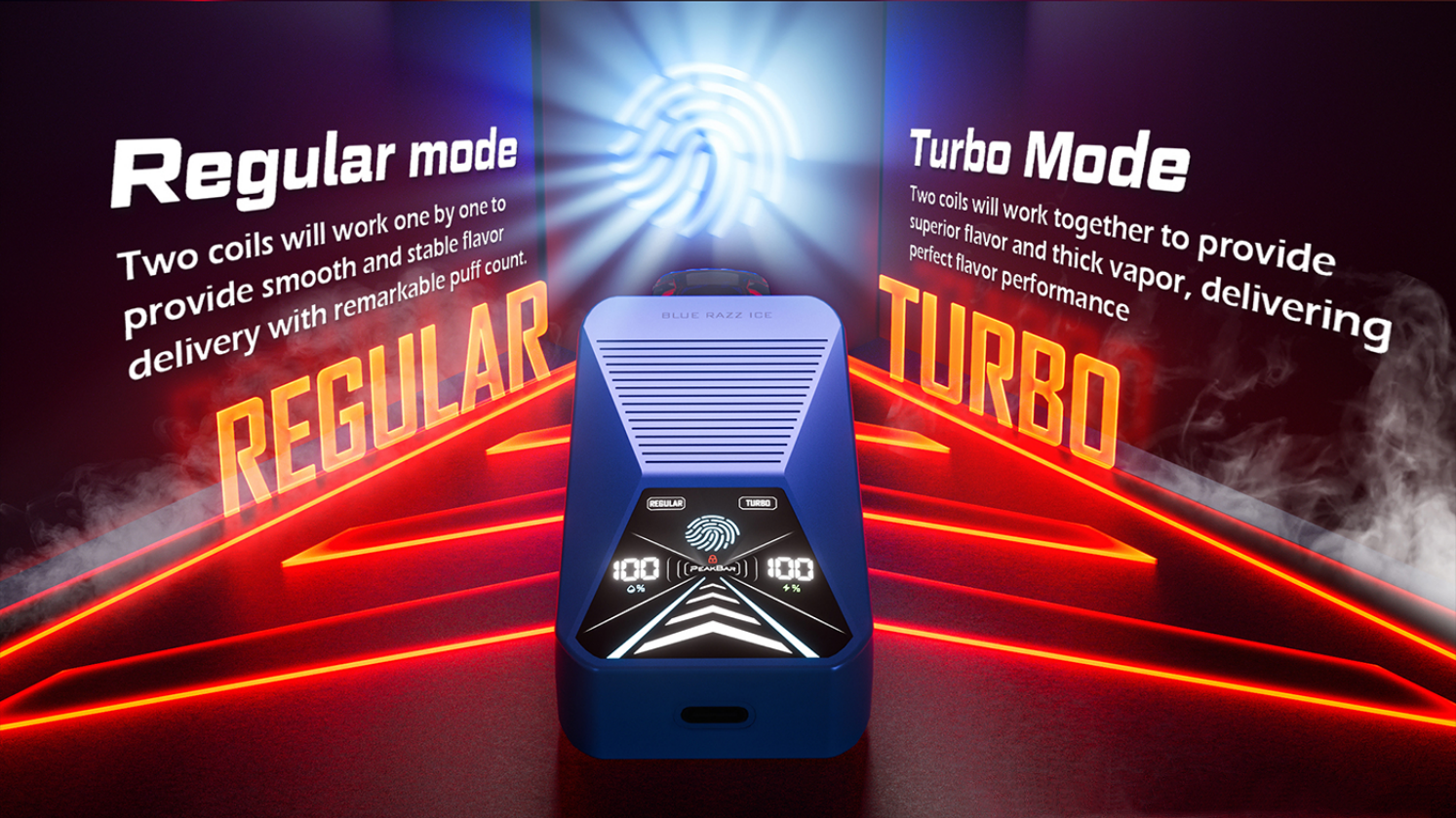 The PEAKBAR CyberPro 25000 Puffs Disposable Vape blends durability and power, offering up to 25,000 puffs. It comes with a 750mAh rechargeable battery and USB Type-C charging for added convenience. With an adjustable output mode of 15.5W or 22.6W and a dual 1.20 mesh coil, it delivers smooth and consistent performance. Pre-filled with 22ml of e-liquid at 5% nicotine strength, this vape ensures big clouds and long-lasting smoking.