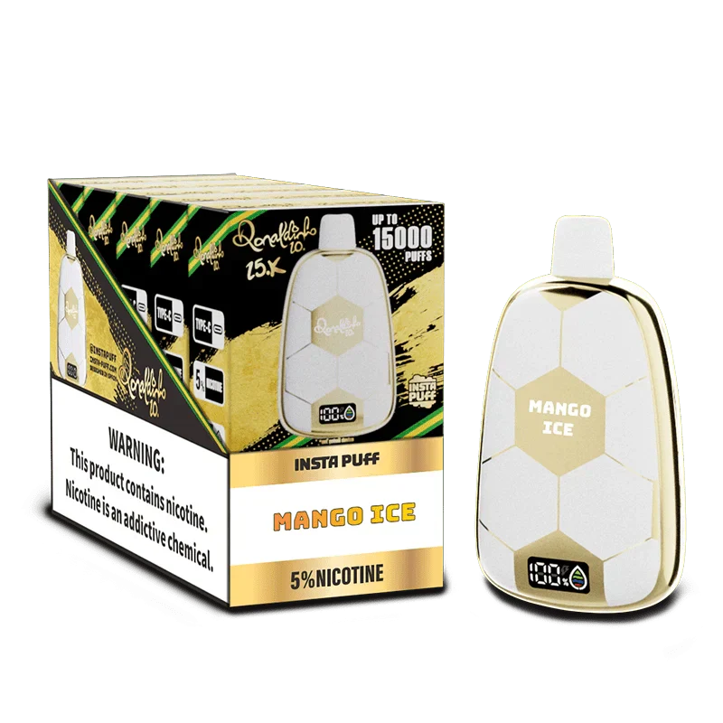 Introducing the Insta Puff Ronaldinho 10 15K, a tribute to football icon Ronaldinho Gaúcho. This disposable vape blends style and performance into one sleek package. Designed to resemble a football and adorned with elegant gold accents, it exudes a cool and classy vibe.