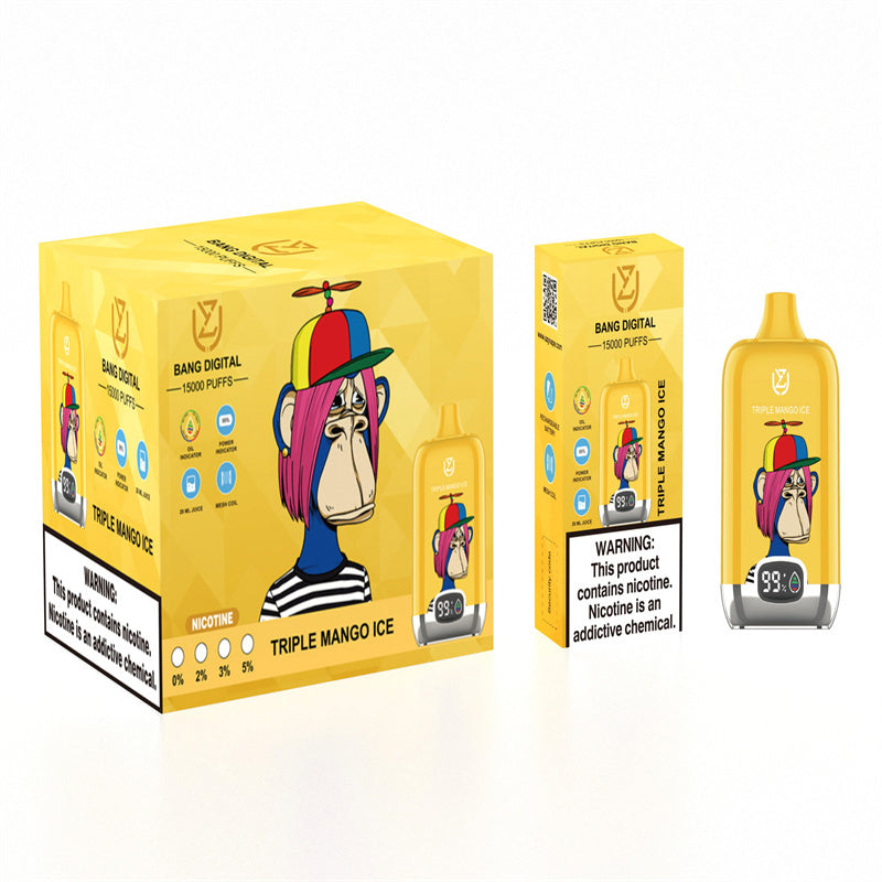 UZY Bang Digital 15000. an advanced disposable e-cigarette with a staggering 15.000 puffs and customizable nicotine options of 0%. 2%. 3%. and 5%. This cutting-edge device features an LED display. offering real-time information for a personalized vaping experience. With a sleek design and rechargeable capability. the UZY Bang Digital stands out in the world of disposable e-cigarettes. Activate the device effortlessly to enjoy a variety of delightful flavors. from exotic fruity blends to refreshing mint undertones. Elevate your vaping journey with the high-capacity puffs. customizable nicotine levels. and modern features of UZY Bang Digital. setting a new standard in disposable e-cigarettes.